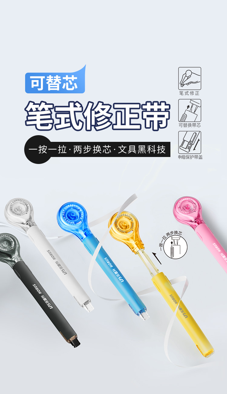 涵蓋修正帶系列、書(shū)寫(xiě)工具系列、益智創(chuàng)意系列、紙品系列等多品類